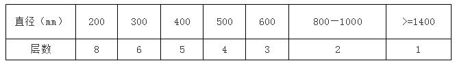 管道存放時(shí)采用臥式堆放,并固定牢靠。存放層數(shù)見(jiàn)下表。